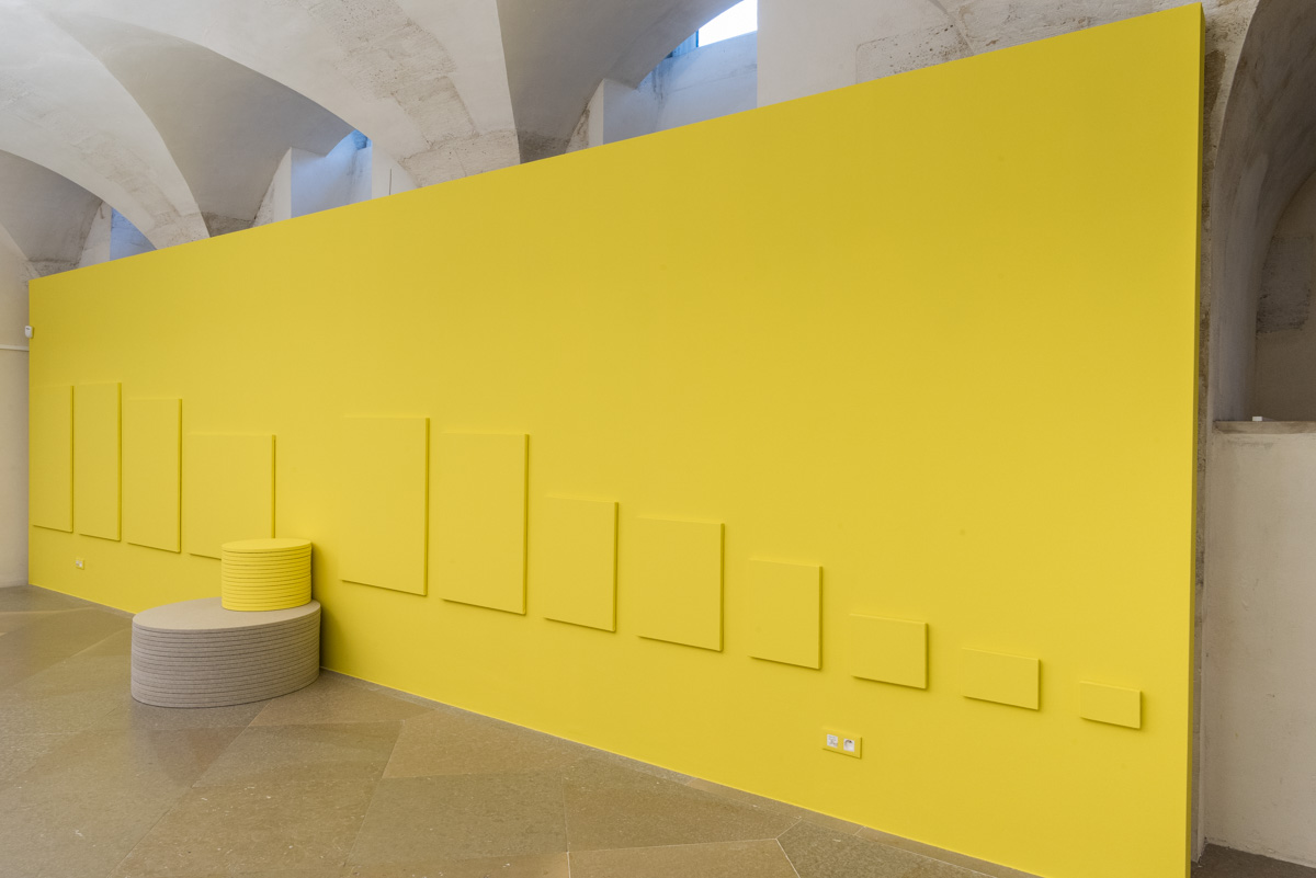 Claude Rutault offre un dialogue avec les œuvres de la collection du musée : peintures, arts graphiques, sculptures seront présentées. Il s’agit de proposer un « grand écart » entre une vision traditionnelle de la peinture, celle d’une toile achevée, signée et datée, et le processus créatif de Claude Rutault qui établit un descriptif de l’œuvre, amenée à se renouveler. Les deux œuvres présentent deux moments de la peinture, la position de deux artistes qui semblent irréconciliables et qui pourtant figurent ici côte à côte. L’exposition trouve un écho au sein de « Picasso. Chefs-d’œuvre ! », avec une œuvre de Claude Rutault dans le Salon Jupiter.